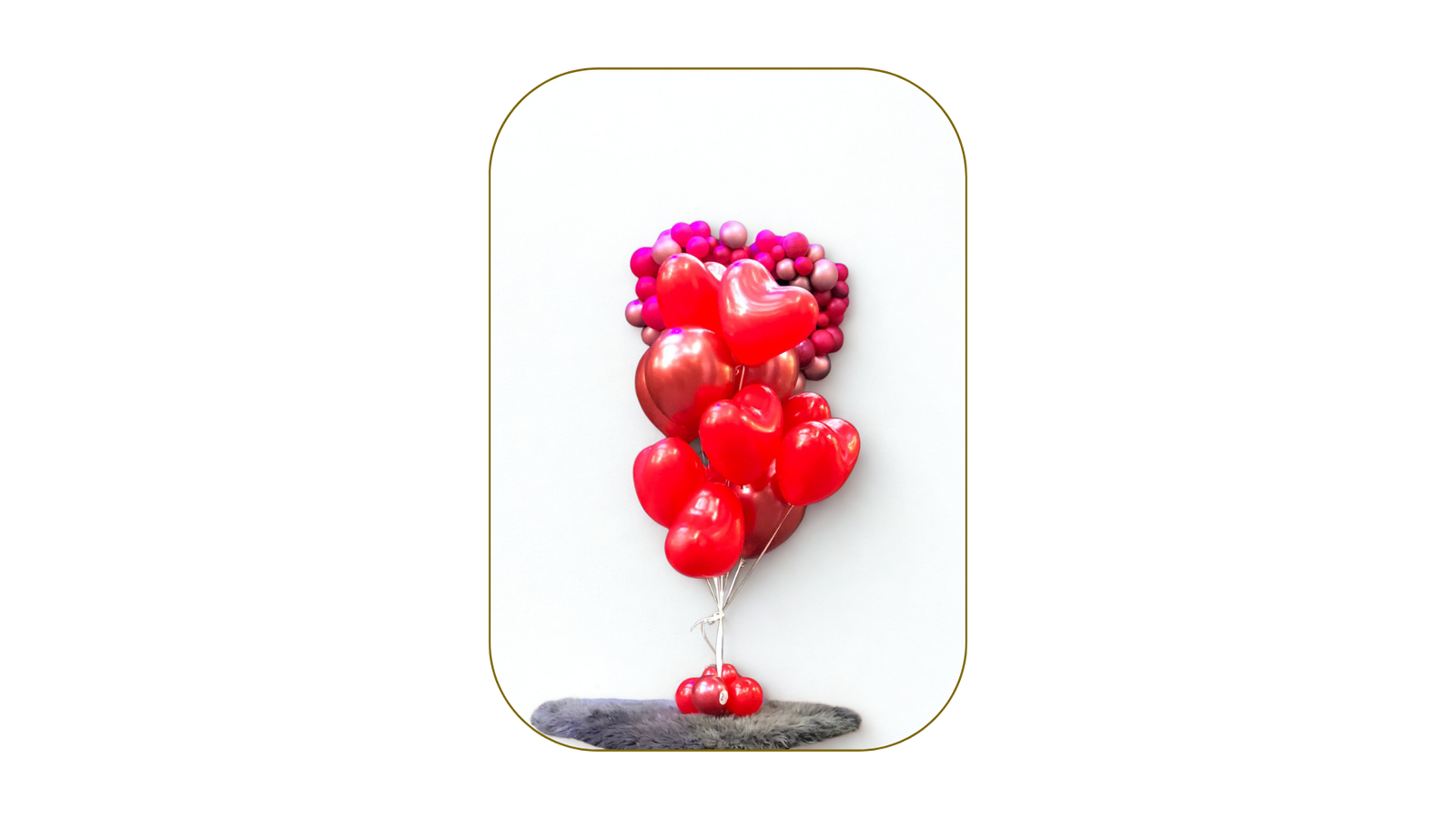 Un arreglo vibrante de globos rojos en forma de corazón, ideal para sorprender en fechas románticas. Se puede personalizar en colores y cantidad de globos.